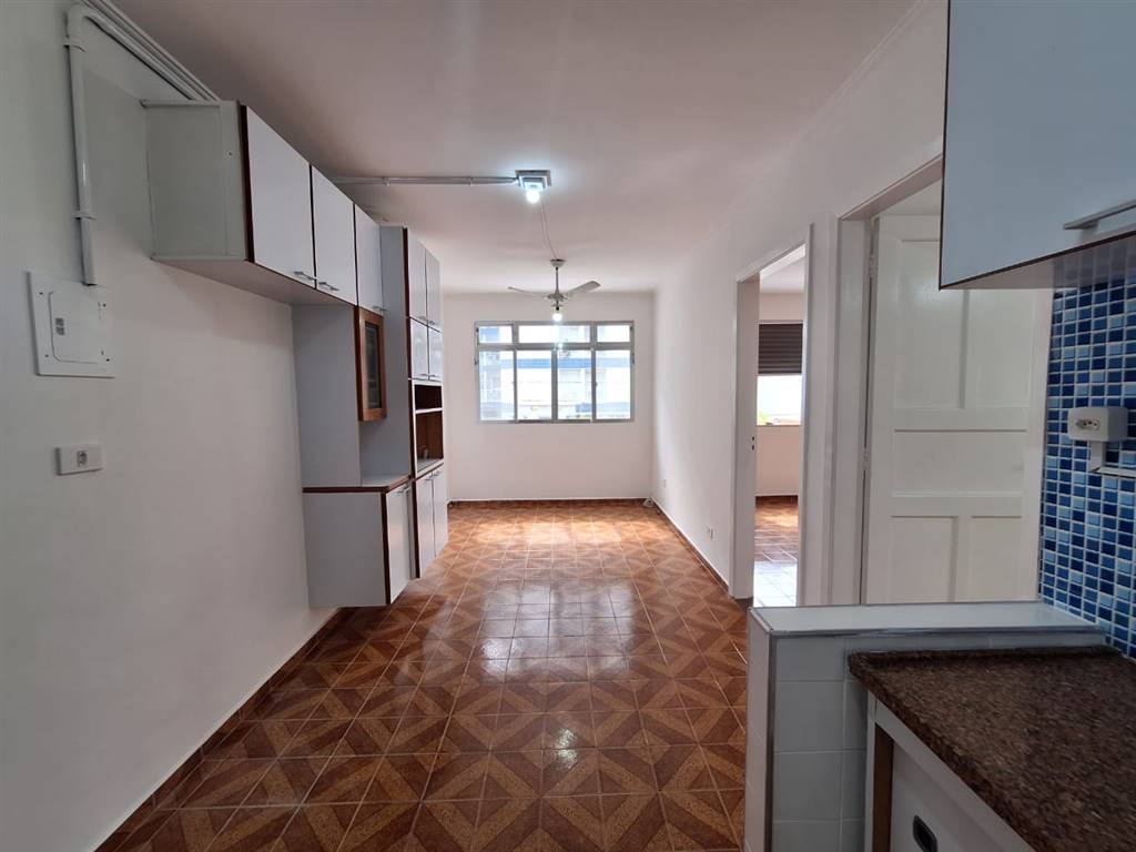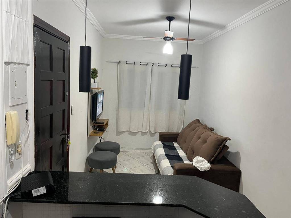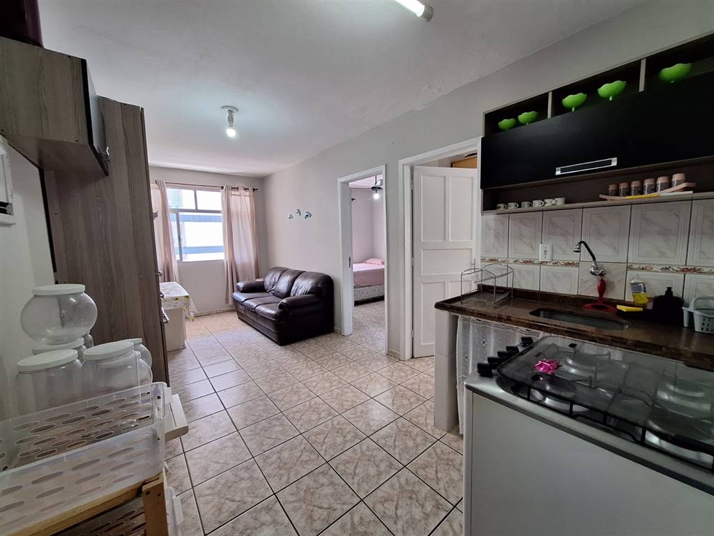 Apartamento sol da manhã, bem iluminado e bem ventilado, com 50m² de área útil, bem distribuídos em 1 dormitório, sala com sacada, cozinha com lavanderia, 1 vaga no bairro Guilhermina em Praia Grande.